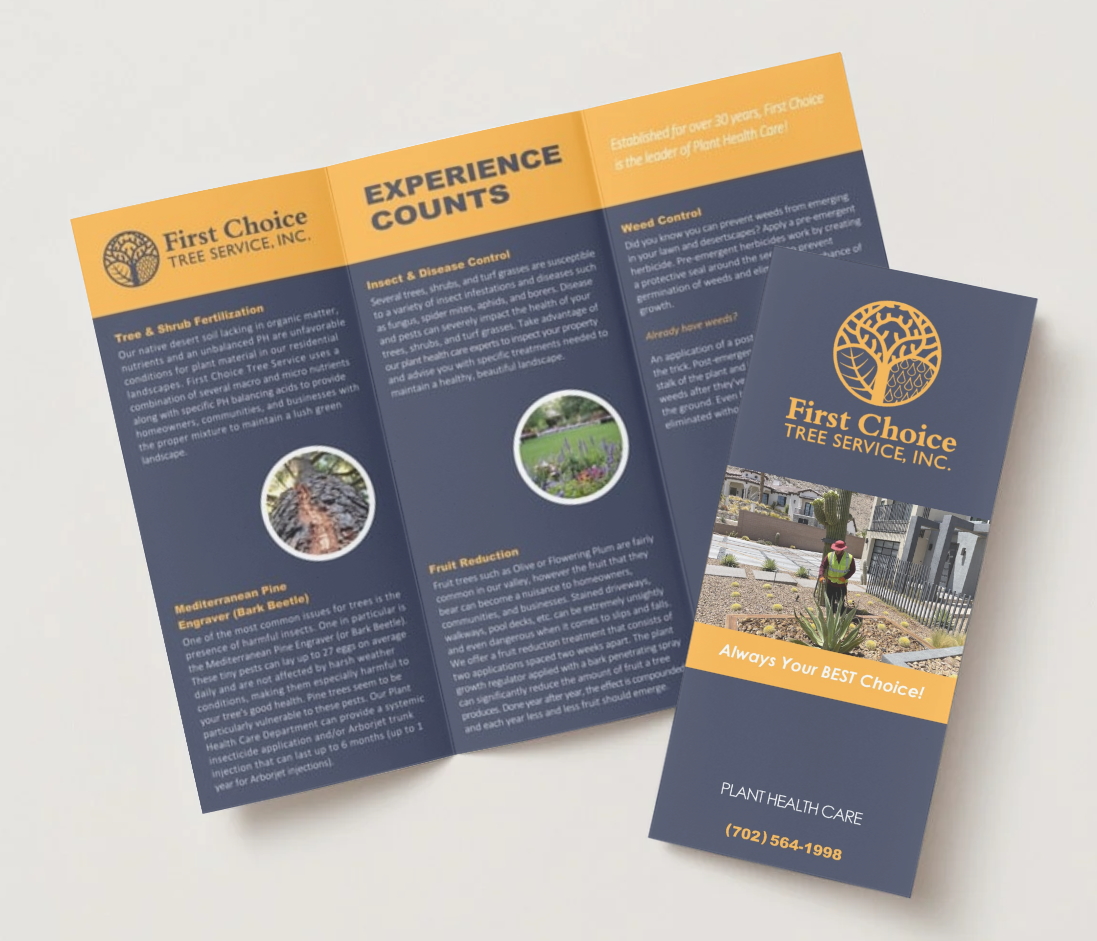 Welcome to First Choice Tree Service’s Resource Hub where you can learn more about who we are and how we care for the trees and landscapes of our community. Download our brochures for detailed information about our services, or explore featured videos from our YouTube channel. Be sure to follow us on Facebook, Instagram, LinkedIn, and YouTube to stay connected and see our work in action.